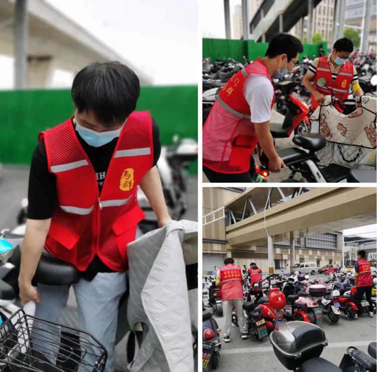 另一邊,元帥班和初心班的男干部也不甘示弱。面對停放雜亂的電動車,他們互相配合,合作整理,并引導正在停車的車主有序停放。原本略顯雜亂的停車區(qū)很快變得井井有條起來。