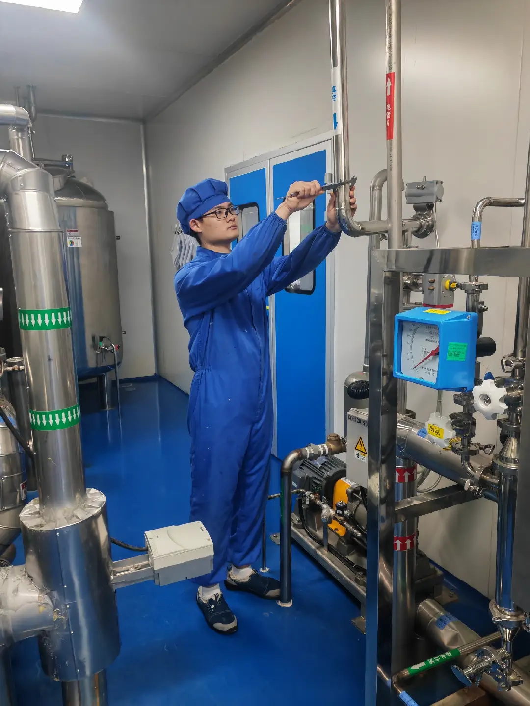 2022年6月,懷揣著“通過設(shè)備技術(shù)創(chuàng)新改進(jìn),提高車間產(chǎn)品的質(zhì)量和生產(chǎn)速度”的夢(mèng)想,他申請(qǐng)從配方轉(zhuǎn)崗至設(shè)備工程師。轉(zhuǎn)崗之初,接到報(bào)修后他不敢一個(gè)人去現(xiàn)場(chǎng),必須拉上老師傅陪同。因此崗位上傳出了“柯定華他不會(huì)修,和我們一樣站在旁邊看,不知道他非要去機(jī)修干嘛”的聲音。柯定華深知“踏石留印、抓鐵有痕”的道理,從力所能及的事情開始干,換輪子、換門鎖、換開關(guān)、打膠、拆一根線接一根線的換傳感器、照葫蘆畫瓢式的換備件……夢(mèng)想從學(xué)習(xí)開始,事業(yè)靠本領(lǐng)成就。漸漸地,柯定華讓車間看見,他已經(jīng)從“雜工”成長(zhǎng)為了配方設(shè)備維修的“行家”。流化床原先棄用的真空吸料管道內(nèi)壁無(wú)法徹底清潔,柯定華通過技改將對(duì)穿螺絲法蘭改為快裝盲板,使得清場(chǎng)時(shí)可將盲板取下深度清潔到管道內(nèi)壁,避免藥粉藏于死角產(chǎn)生交叉污染的風(fēng)險(xiǎn);原先流化床充氣密封圈頻繁漏氣,他通過技改更換螺紋式氣管接頭為快插式氣管接頭,并培訓(xùn)崗位人員,使得密封圈破損頻率大大降低,減少了生產(chǎn)過程中由于密封圈破損造成物料暴露于空氣中受污染的風(fēng)險(xiǎn)等等。根深才能葉茂,本固方可枝榮。GLATT制粒線如今煥然一新,精神抖擻,發(fā)生故障頻率遠(yuǎn)低于從前。