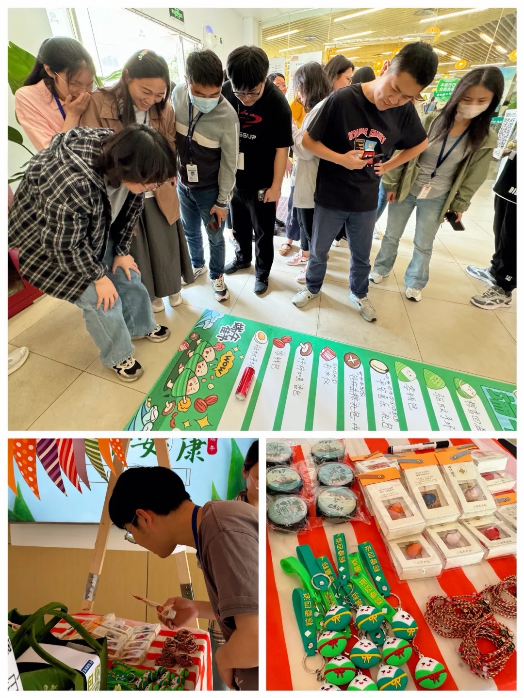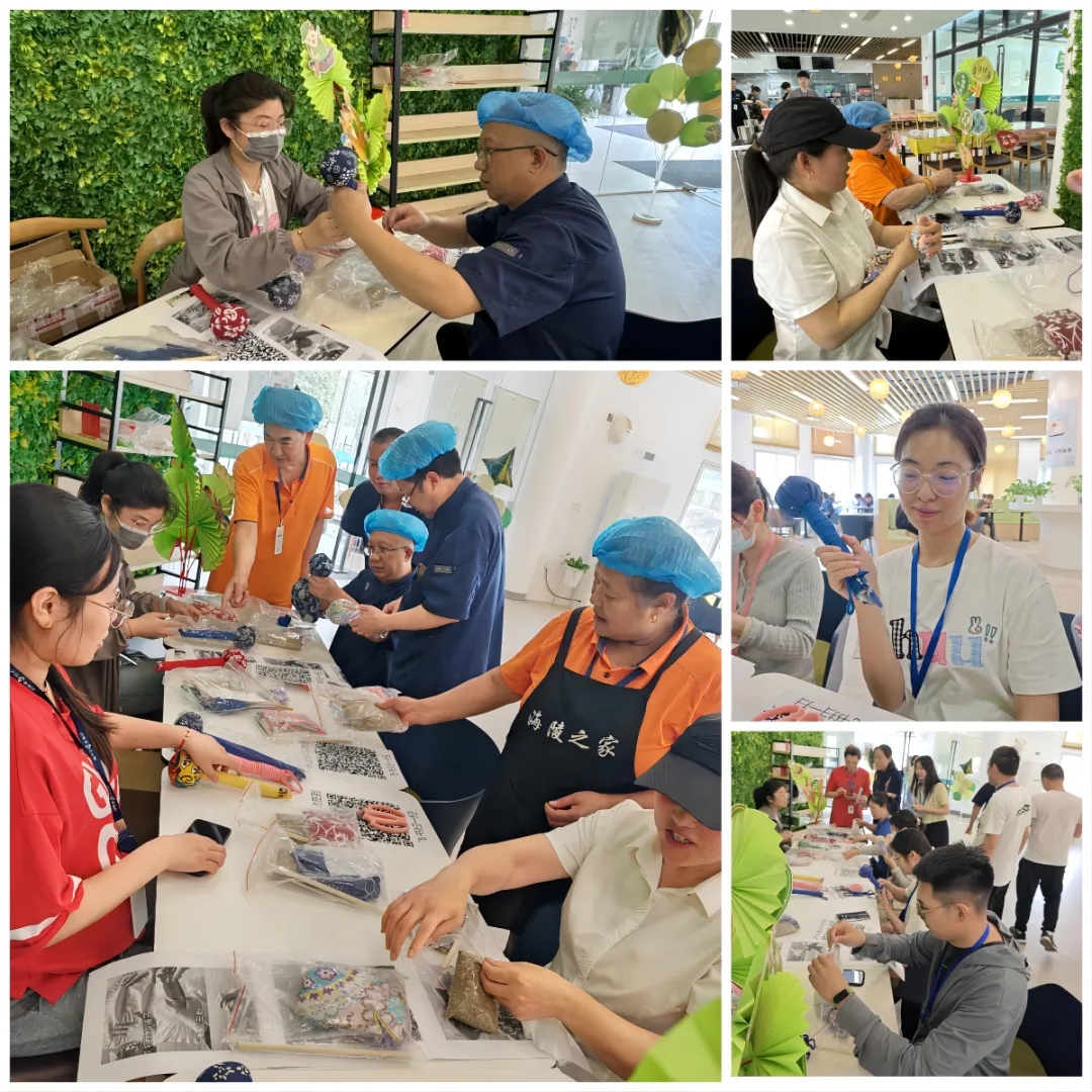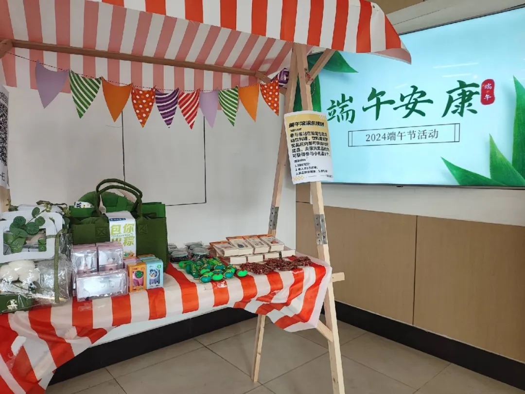 “端午滾滾樂”:食堂入口處,鋪上了一塊兩米長的地毯,裝點著可愛的小粽子,大小相同的空白窗格像階梯一樣列隊在地毯中央。員工們紛紛加入游戲,站在指定位置,將飲料罐滾動至相應(yīng)窗格中,獲得驚喜獎品;未能獲獎的員工,也都領(lǐng)取到端午節(jié)五色繩。海陵工會為員工們準(zhǔn)備了端午大禮包、補(bǔ)水儀、端午掛飾、零錢包等眾多獎品,活動現(xiàn)場熱鬧非凡,員工們積極參與游戲,共祝端午安康。