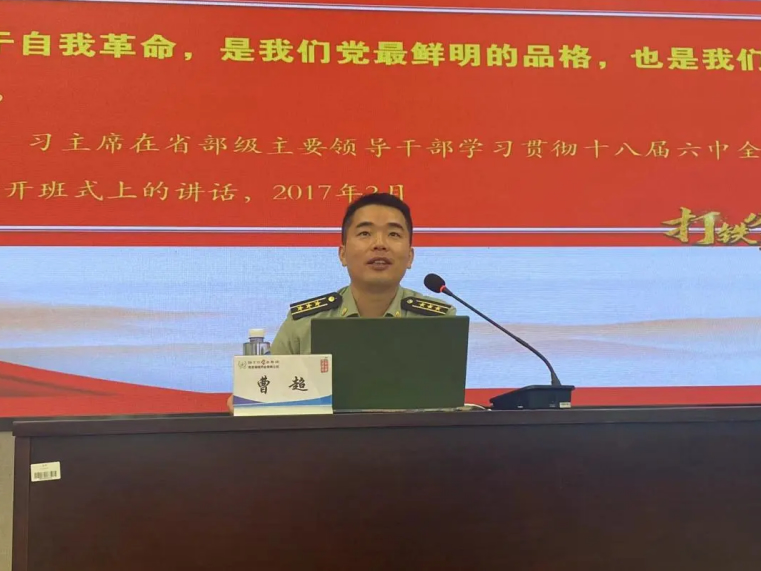 會議的第二項,全體與會人員進行了專題黨課學(xué)習(xí)。陸軍工程大學(xué)政治工作系曹超副教授為大家進行了主題為《勇于自我革命是我們黨最鮮明的品格》的專題匯報。曹教授肯定了海陵黨支部的凝聚力、戰(zhàn)斗力,并以黃培炎和毛澤東關(guān)于“如何跳出治亂興衰的歷史周期律”的探討為切入點,從以下三個方面進行了詳細(xì)闡述: