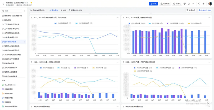 今年2月,響應(yīng)集團(tuán)信息化要求,海陵推廣全員學(xué)習(xí)新工具的使用。車(chē)間主任丁紀(jì)向車(chē)間全員重點(diǎn)培訓(xùn)了儀表盤(pán),而作為培訓(xùn)輸出項(xiàng),項(xiàng)鈺茹嘗試梳理了去年的廠區(qū)能耗數(shù)據(jù),制作了自己崗位的儀表盤(pán)。沒(méi)想到,丁主任對(duì)她練手的“作業(yè)”贊賞有佳,進(jìn)而讓她牽頭將儀表盤(pán)內(nèi)容擴(kuò)充至全廠數(shù)據(jù)。