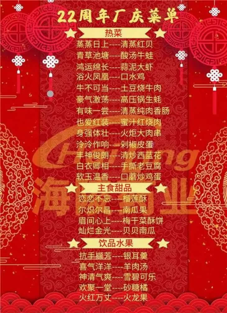 二十二年!是一道歷史印跡的長(zhǎng)度!是揚(yáng)帆逐夢(mèng),轉(zhuǎn)型發(fā)展的高度!海陵食堂準(zhǔn)備了豐盛的廠慶自助餐活動(dòng),邀請(qǐng)大家一起共享這份喜悅,見證奮進(jìn)者的光芒~